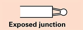 Exposed Junction has the fastest response time ideal for measuring rapid temperature changes. Clear coating on most models provides a humidity barrier for the thermocouple. Do not use with corrosive fluids or atmospheres.
