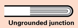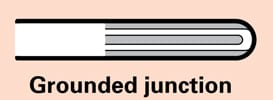 Ungrounded Junction has a welded junction insulated from the protective sheath and is electrically isolated. Longer response time; use for conductive solutions or where isolation of the measuring circuitry is required.
