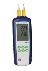 Model 20250-02 is a dual-input thermometer with front control buttons, temperature differential, and data logging of up to 18,000 readings. USB interface lets you easily download data to a PC for analysis.