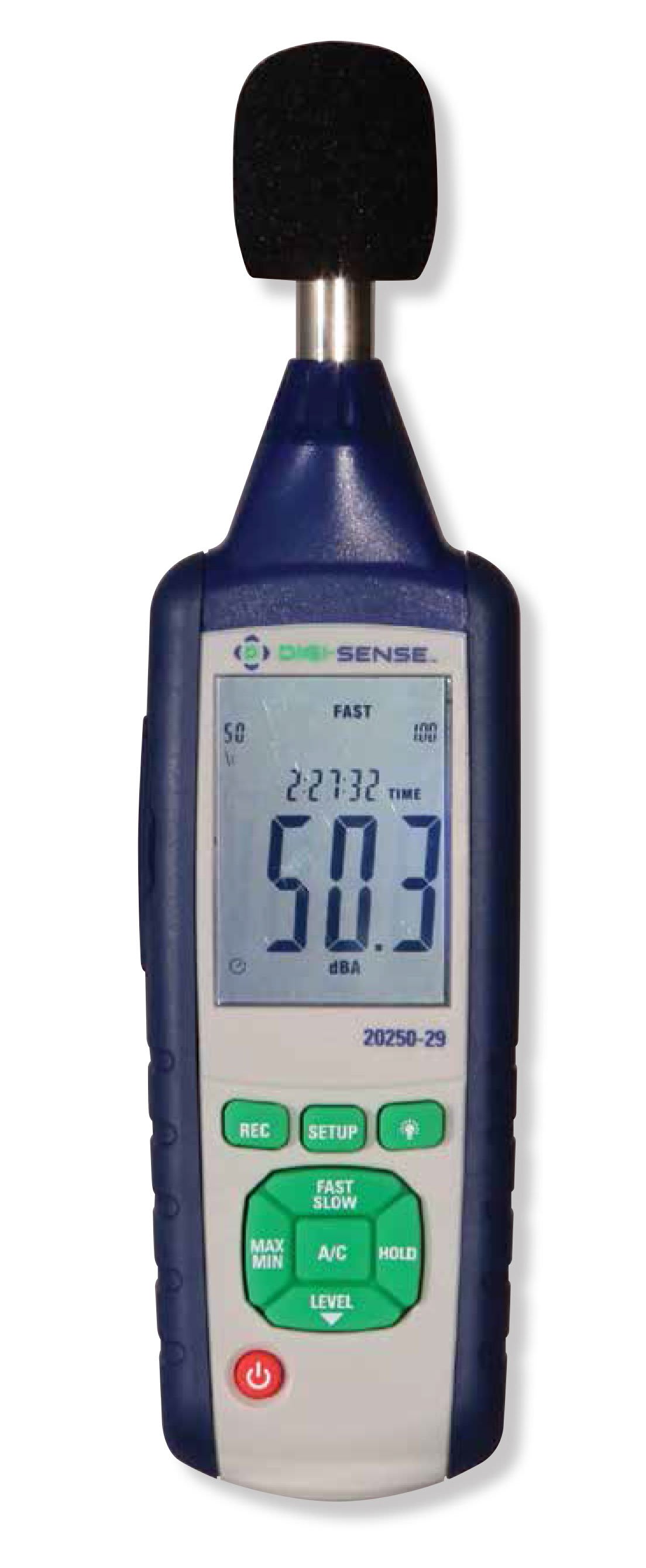 Precision accuracy measurements with powerful data logging software. Get precision sound decibel measurements for product noise certification and reduction applications. Meter conforms to IEC61672-1 Class 2 standards. The Digi-Sense Data Logging Sound Level Meter (Model 20250-29) measures sound decibel levels for noise certification and reduction applications. The meter conforms to IEC61672-1 Class 2 standard. Advanced features include data Hold, Max/Min readings, low/medium/ high ranges, over and under range, and A and C weighting. The unit offers Fast/Slow response, analog AD/DC outputs, USB connectivity, data logging software, backlight display, and automatic power-off. The instrument is fully tested and calibrated to NIST-traceable standards. Careful use of this meter will provide years of reliable service. The Digi-Sense data logging sound level meter provides precision sound decibel measurements for product noise certification and reduction applications. It conforms to IEC61672-1 Class 2 standards, making it ideal for OSHA and IEC surveys. Unit features A and C weighting capabilities for measuring noise levels from industrial machinery or equipment to residential/commercial environments ensuring noise level standards and compliance. The intuitive interface makes this sound meter easy to set up and use right out of the box. Use the included software to view your sound measurement data in graphical formats as well as record and download data, via USB connectivity, to your PC for further analysis. Additional features include Max/Min and Hold functions, over- and under-range indication, fast/slow response, analog AD/DC outputs, and USB connectivity. Automatic power-off conserves battery life. Plus the NIST-traceable precalibration means you get reliable measurements right out of the box, saving you time and money!