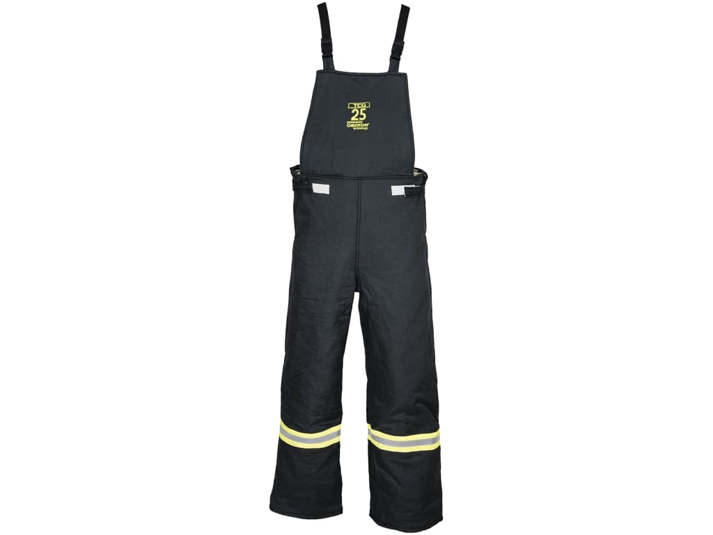 The Oberon 25 Cal TCG Ultralight Arc Flash Bib Overalls are an ultralight bib made from a proprietary blend of arc-rated, inherently flame-resistant, aramid fibers. The bib features reflective day/night striping on arms and legs for increased visibility, knit cuffs, dual-stage zipper front closure, and adjustable suspenders for easy on/off. The 25 Cal TCG Ultralight Arc Flash Bib Overalls meet ANSI/ISEA 125 Level 2 conformity and arc flash PPE Category 3 standards with an arc rating of 27 cal/cm². Please refer to NFPA 70E or CSA Z462 Standards for specific selection requirements (See Electrical Safety Standard and PPE Categories in the Documents section). An arc flash risk assessment must first be completed by the employer before the appropriate protection level can be determined.