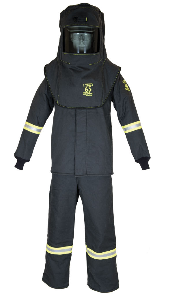 The Oberon TCG65 Series Arc Flash Suit Meets ANSI /ISEA 125 Level 2 Conformity and Arc Flash PPE Category 4+ standards with an arc rating of 76 cal/cm2. Please refer to NFPA 70E or CSA Z462 Standards for specific selection requirements. Hoods utilize a patented True Color Grey (TCG™) arc flash face shield technology which produces no color distortion while performing common work tasks and comes with a scratch-resistant, anti-fog coating. Arc flash suit set comes equipped with a hood, coat, and bib overalls. The hood comes with a front mounting L.E.D. light and a fresh air hood ventilation system.