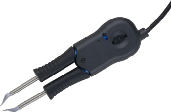 PACE's new MT-200 MiniTweez is a precision thermal tweezer designed to rework micro-components such as 0201s, 0402s and 0603s in a simple, one-handed operation. In the case of 0201s, perfectly aligned tips are critical for success, and the MT-200 has been engineered for multi-axis tip alignment and rotational (theta) alignment that provides ultimate control and targeting accuracy. A Tip-Gap Adjustment Wheel adjusts the gap between the tips to reduce the distance from tip-end to tip-end, reducing grip stress and lessening operator fatigue during repetitive operations. In addition, the MT-200 can also provide safe, rapid removal of much larger chips, SOTs, D-PAKs, SOICs and TSOPs. Designed exclusively for PACE’s AccuDrive power sources, the MT-200 uses patented, higher powered Blue-Series Tip-Heater Cartridges that can be changed within seconds, heat up quickly, provide up to 120 Watts of power per tip pair, yet cost almost half of other competitive tweezer cartridges. Two versions available The MT-200 sold in two configurations - the handpiece can be purchased either on its own with no accessories. It can also be purchased as a kit with a tip and the Instant Set Back stand. The Instant Set Back stand automatically reduces the temperature when the tool is placed back in the stand, helping to extend tip life.