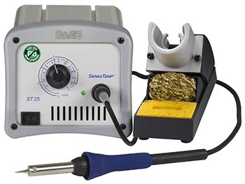 The ST 25 soldering system from PACE improves quality, reduce costs and eliminate the maintenance and calibration hassles associated with other soldering systems. The ST 25 maximizes heat delivery at low, safe temperatures and eliminates the need for calibration. Heavy-duty metal housing makes the system the ideal choice for the harshest production environments. The ST 25 system comes with the PS-90 Soldering Iron.