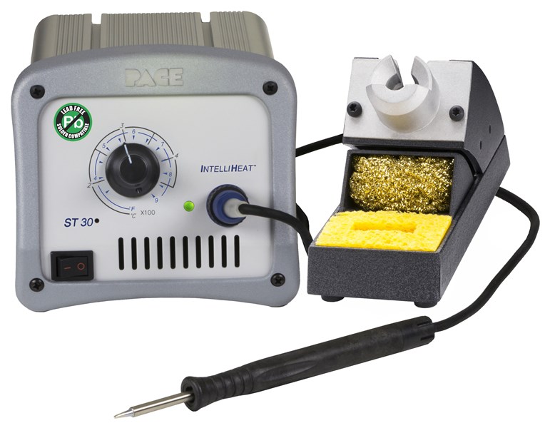 The ST 30 is a single channel system with dial control featuring IntelliHeat®. The system is packaged with the TD-100 ThermoDrive Soldering Iron or can be purchased as a Power Source only and combined with any of 4 optional handpieces. The ST 30 improves quality, reduces costs and eliminates the maintenance and calibration hassles associated with other systems.