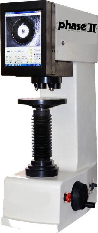 The 900-357 Brinell hardness tester combines a touch screen computer and Brinell hardness tester in one complete Brinell hardness testing package. All the required parameters can be selected on the panel computer. It’s clear display and touch screen make it easy to use and eliminates user error. The clear video screen using it’s CCD interface will directly display the dynamic indentation image, lock the image and automatically measure the Brinell hardness. The operator can choose the selectable conversion values among the hardness scales, save the results of each measurement and generate the image report. The load of test forces is accomplished using state of the art load cell system combined with precision mechanical drive.