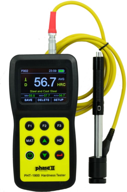 The PHT-1900 portable hardness tester can perform tests that easily convert to the most popular hardness scales, including Rockwell, Brinell, Vickers, Shore, etc.