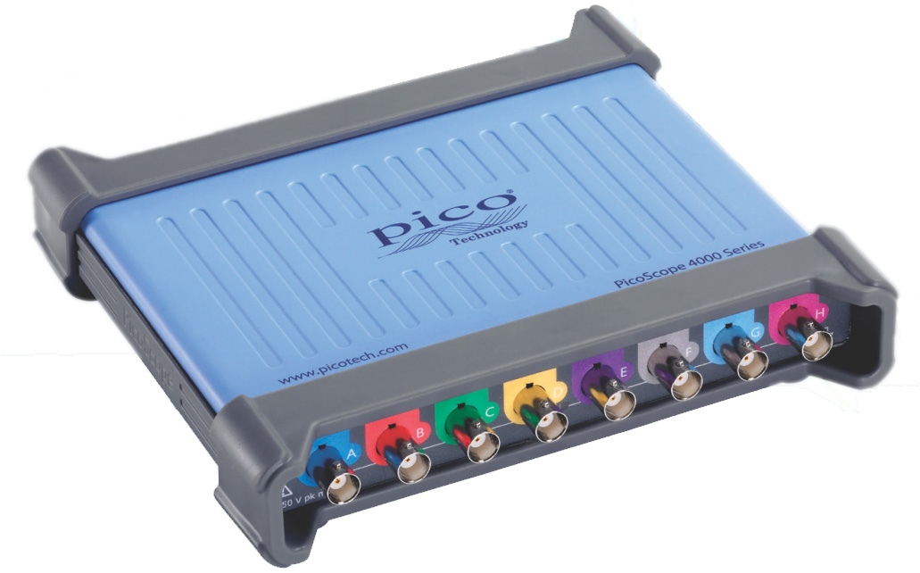 The PicoScope 4824 is a low-cost, portable solution for multi-input applications. With 8 high-resolution analog channels you can easily analyze audio, ultrasound, vibration, power, and timing of complex systems.