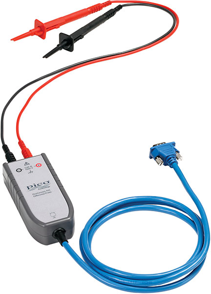The probe is fitted with the Pico D9 connector for use exclusively with the PicoScope 4444 differential oscilloscope, upon connection it is automatically identified by the scope as a 25:1 probe, and scales the vertical axis in PicoScope 6 software with the correct probe attenuation.