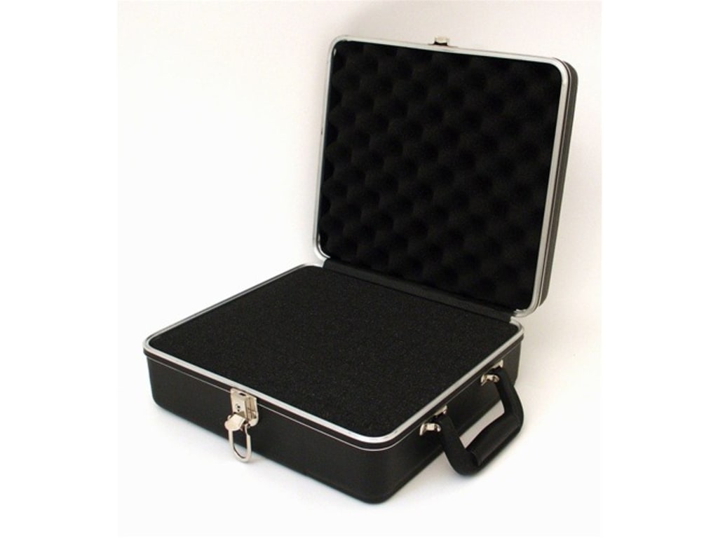 Light-duty, black, scuff-resistant molded ABS thermoplastic forms the tough shell of these cases. Extruded aluminum rim, drawbolt key lock, and strong molded handle. The case comes with our standard pick-n-pluck cubed foam.