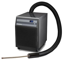 PolyScience Low Temperature Coolers enhance and simplify low-temperature laboratory work, providing rapid, low-cost cooling of liquids to temperatures as low as -100°C. Typical applications include the cooling of exothermic reactions, vapor and solvent trapping, and impact testing. They’re also ideal for extending the temperature range of non-refrigerated circulators to below ambient and boosting the cooling capacity of refrigerated circulators. Enhance and simplify your low-temperature laboratory work with a PolyScience Low Temperature Cooler. Available in both immersion probe and flow-through styles, they provide rapid, low-cost cooling of liquids to temperatures as low as -100°C. Typical applications include the cooling of exothermic reactions, freeze point determinations, freeze drying, impact testing, lyphilization, and vapor and solvent trapping. Immersion Probe Style Coolers - Excellent for trapping and Dewar-type applications, these coolers reduce the expense of using dry ice or liquid nitrogen. A flexible hose allows convenient placement of the cooling probe. Flow-Through Style Coolers - Extend the temperature range of non-refrigerated circulators to below ambient and boost the cooling capacity of refrigerated circulators. These coolers also offer an extremely economic alternative to tap water cooling of heated circulating baths when rapid cool-downs or operation at or near ambient is needed.