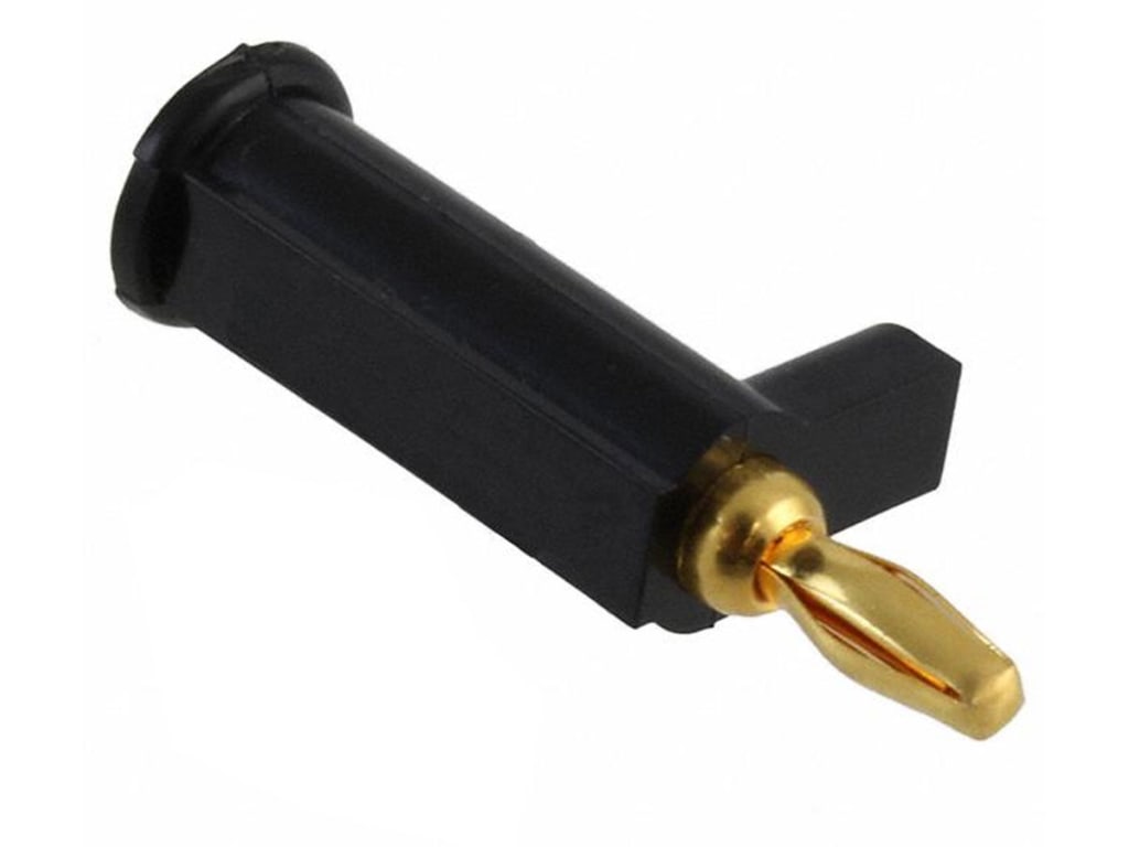 Pomona 2945-0 is a Miniature Banana Plug With Safety Sleeve. The wire is firmly held in place with an internal set screw. The integral collar insulates leads and acts as a strain relief by preventing the flexing of lead at the set screw. Color: Black
