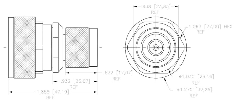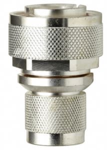 Pomona 6256 7/16 DIN male to Type N male connector adapters will connect to equipment featuring 7/16 DIN female interfaces and Type N female connectors. 7/16 DIN to Type N connector adapters are constructed from brass bodies with silver plating, Teflon insulation and silver-plated Beryllium Copper or Brass center contacts. These adapters feature reduced intermodulation generation, improved VSWR, stable electrical and mechanical connection and peak power rating of 40 kW. Higher contact pressure means lower contact resistance and better heat dissipation for better power handling. With interface dimensions and coupling nut torque ten times greater than Type N interfaces and more durable and long-term reliable conductors, these 7/16 DIN adapters will provide a long service life under harsh conditions.
