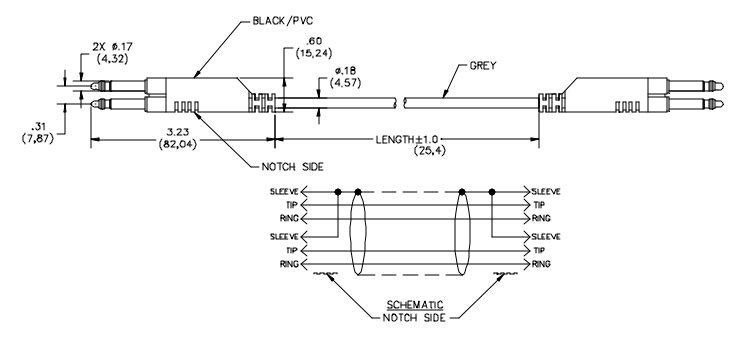 Shielded cable to reduce noise. Provides a quick connection between dual Bantam Jacks. Dual Bantam Plugs are molded to the cable for optimum durability.