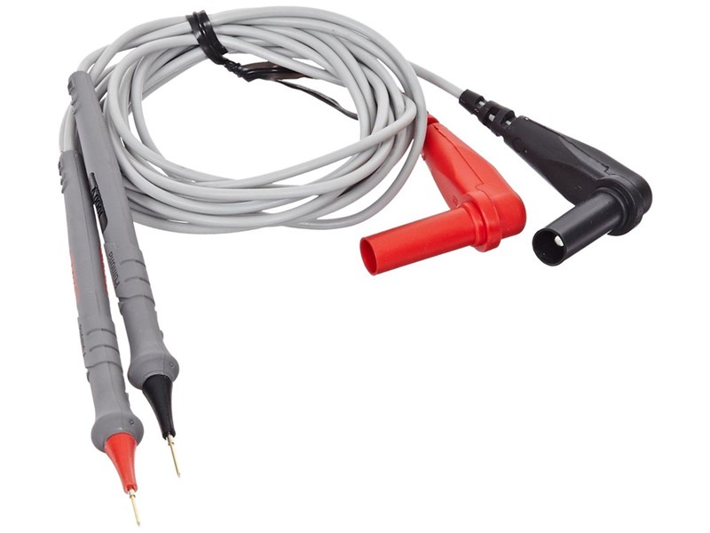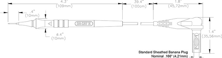Miniature probe is the perfect size for probing tiny, high-density circuits. Gold plated pogo pin tip keeps constant pressure on test point for consistent readings. Replaceable probe tips available. Safety design complies with all the latest standards. Flexible Silicone insulated wire resists burning. Right angle DMM plug fits most digital multimeters.