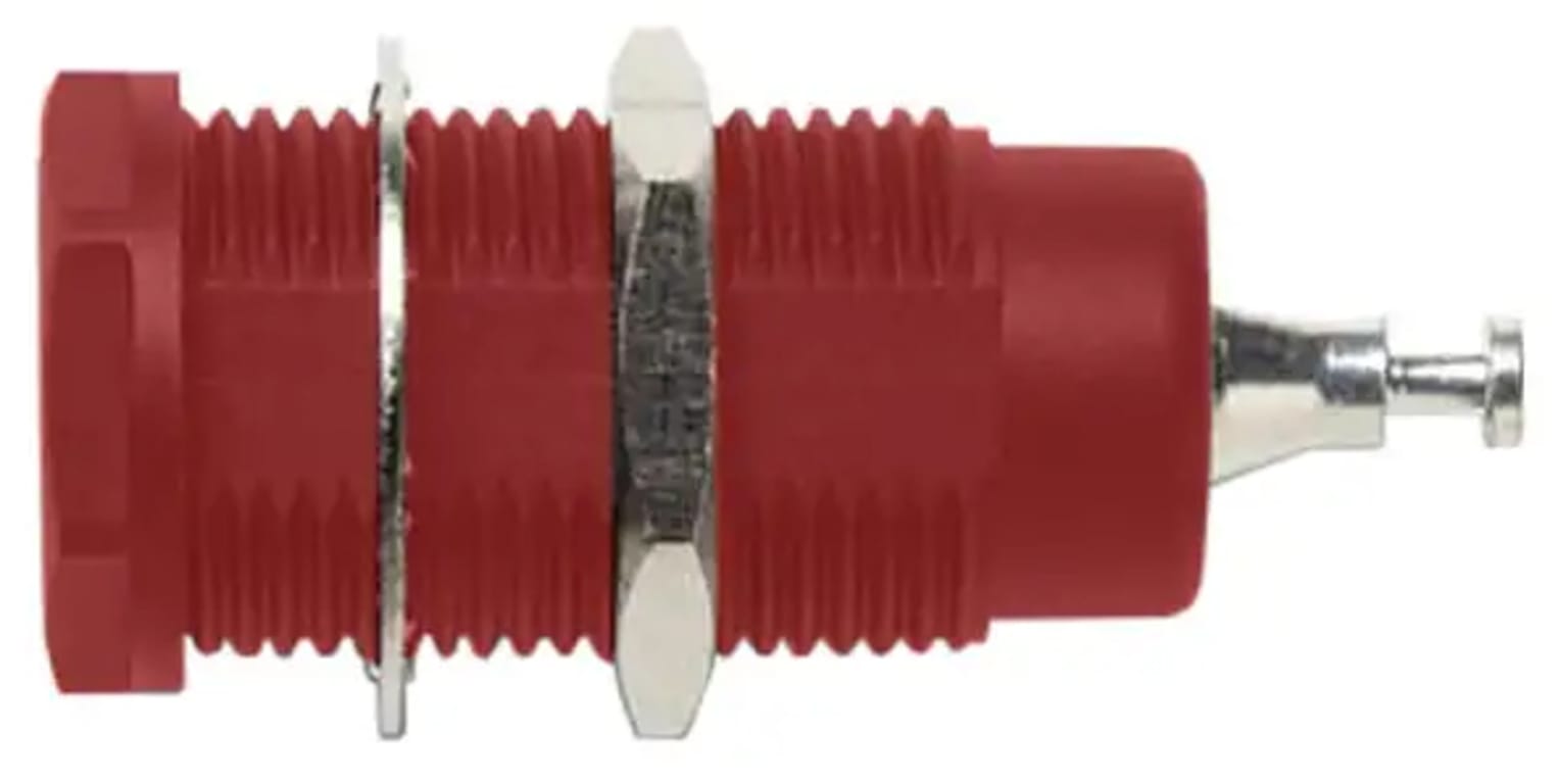 Pomona 6387-ST-T-2 is a Banana Jack, Panel Mount, 4mm For Sheathed Banana Plugs. Color: Red.