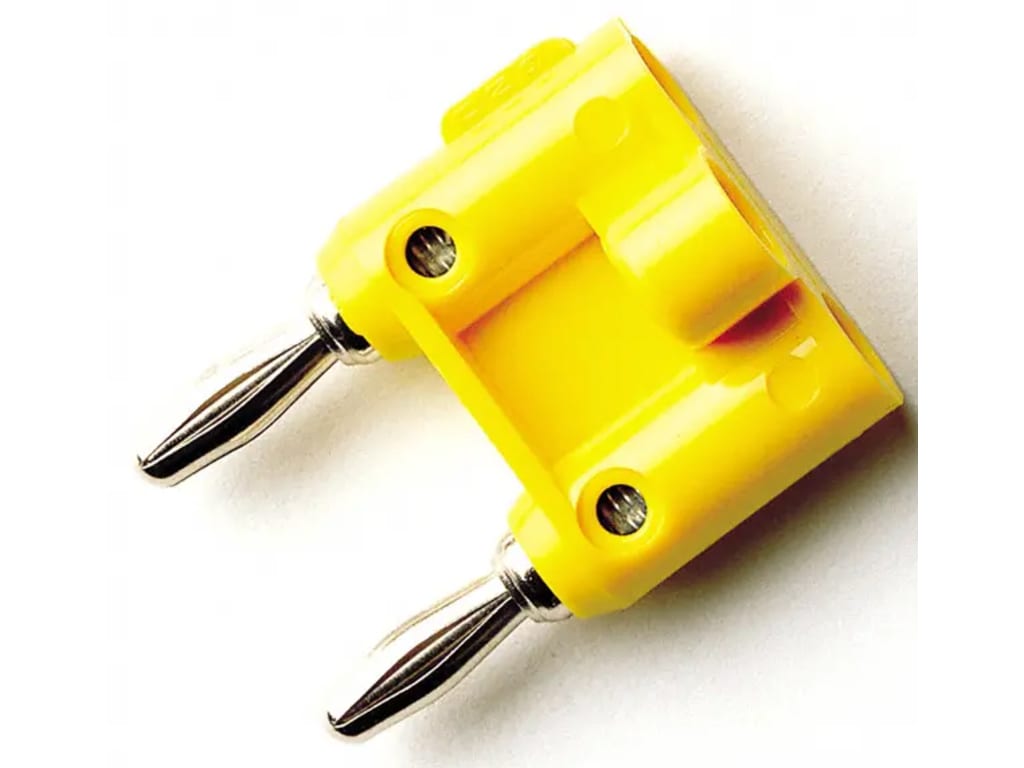 Stackable Double Banana Plug with Cable Guide, Solderless, Yellow