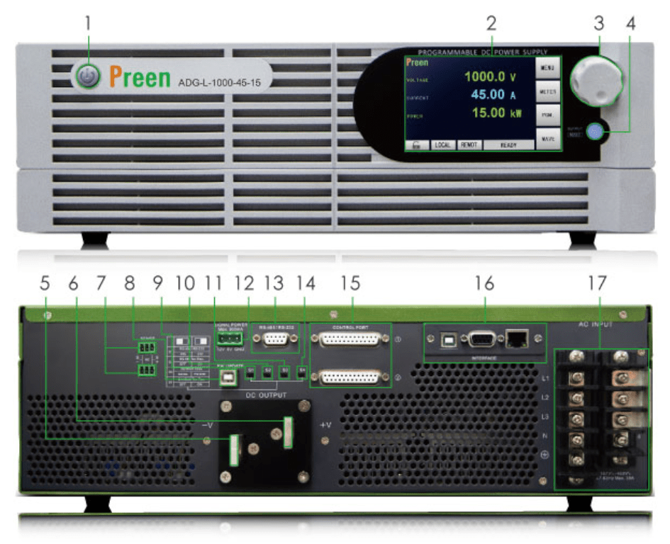 AC Power Corp. (Preen) introduces its latest programmable DC power supply, ADG-L Series which has 19 models and three different output power, 5 kW, 10 kW, and 15 kW. Utilizing PWM technology, ADG-L delivers a stable output and precise measurement.