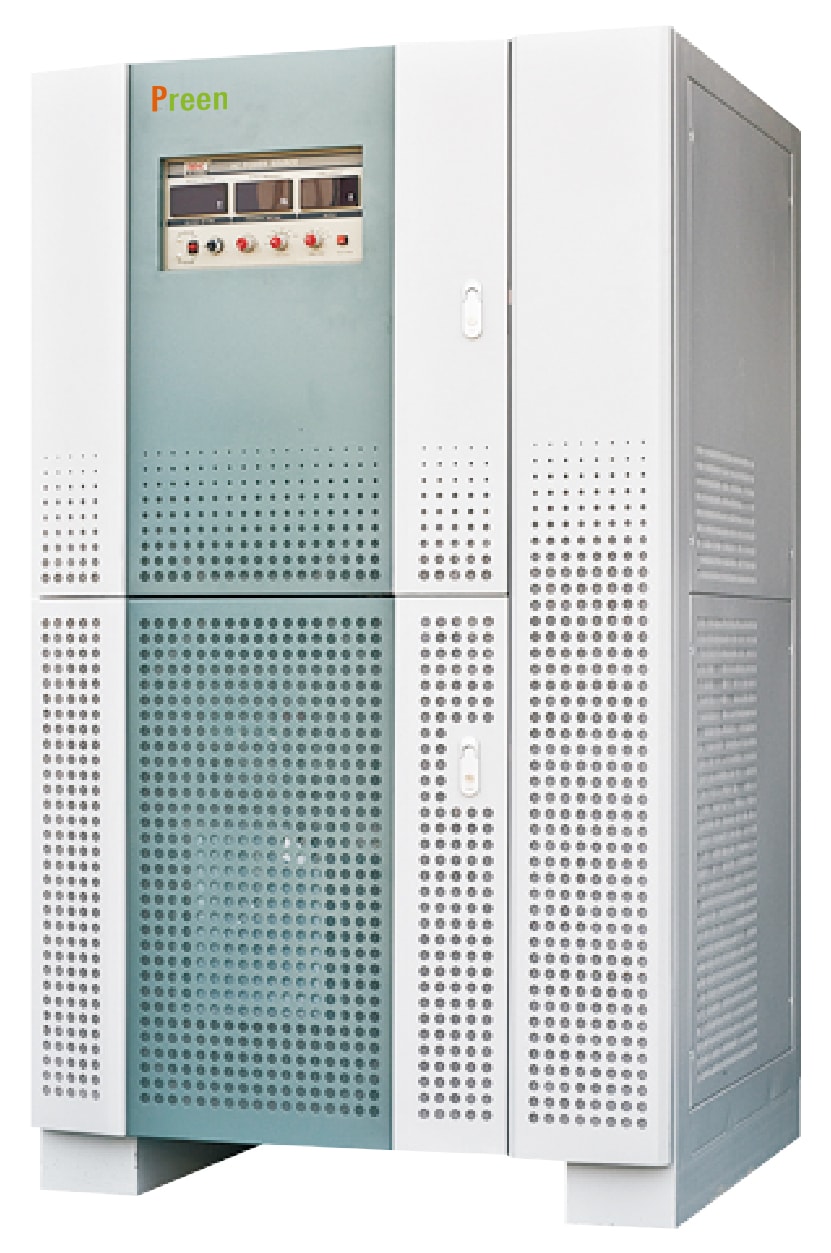 Preen's AFC Series is an adjustable AC power source, provides double power conversion from a variety of inputs to pure clean sinusoidal output, isolate the harmonics from the grid system, fully adjustable across the output voltage and frequency ranges. Preen engineers have designed power products for over 35 years, the reliability and endurance of the AFC series products make the ideal solution for production, burn-in testing, chamber power, or laboratory stationary power source. AFC series is designed with IGBT technology, consists of single phase output models from 0.5kVA to 120kVA and three phase output models from 5kVA to 2000kVA. The adjustable voltage output range of 5"300VL-N (8-520VL-L for three phase output system). AFC series also provides custom voltage range option that can simulate higher voltage range utility (ex: 600VL-L system) or lower voltage range with higher current test units. AFC series provides different output frequency band with different price range. Users can choose the frequency band according to their requirements and save the cost for their specific purpose. AFC series is a simple, clean, and cost effective solution for all of your AC power conversion needs!