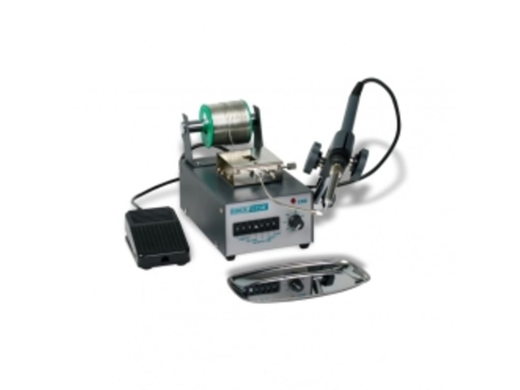 The Quick 375B+ is a self-feeding soldering feeder. The Quick 375B+ features a safe and reliable ceramic heating element, precise and stable temperature controlled by RTD sensor, step motor with adjustable functions (feeding speed, volume, interval time, backing time), and auto/manual feeding modes. The Quick 375B+ is suitable for soldering connectors, adapters, and various high-output soldering applications.