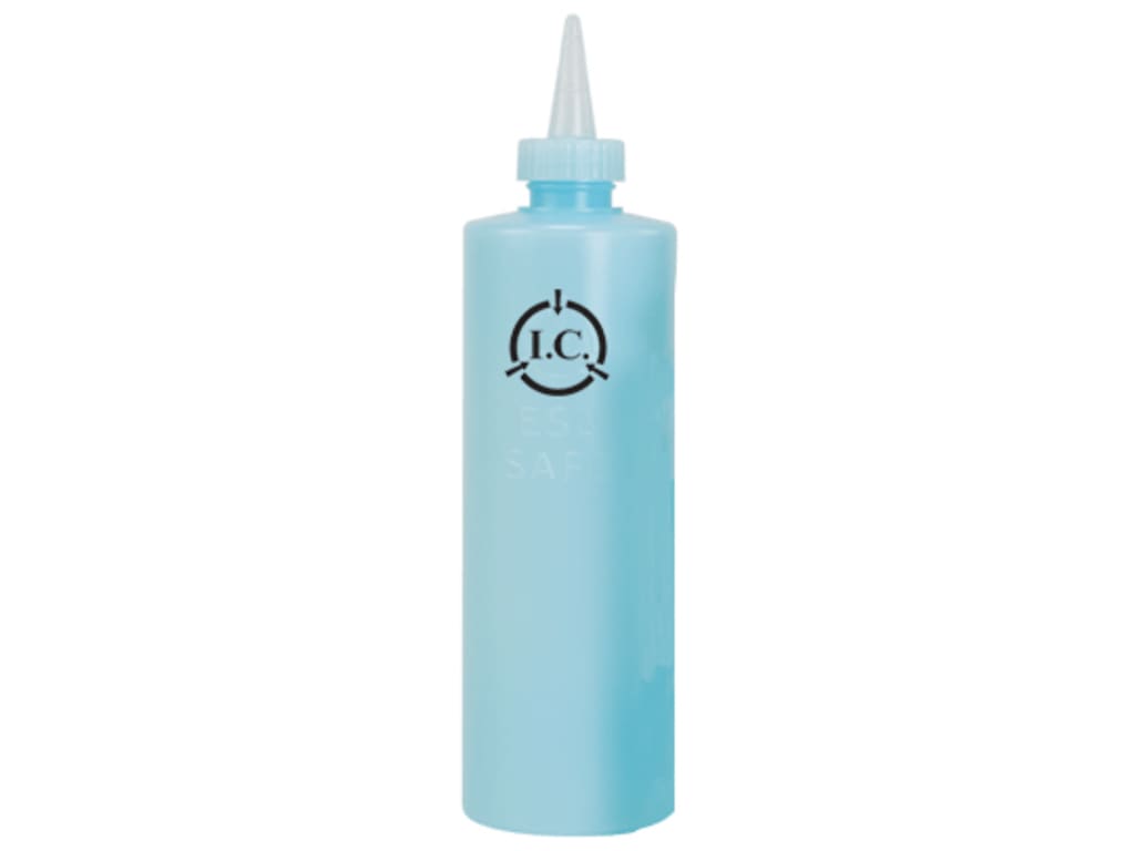 The R&R Lotion WB-16-ESD is an 16oz ESD water bottle with an average surface resistivity of 10^9 to 10^10. This blue static dissipative solvent container will dissipate a charge of plus or minus 5000 volts in less than 2 seconds at 40% relative humidity. By its chemical nature, they will not have any chemical reactivity with solvents such as TCE or alcohol. The pH of the deionized water solutions tested was the same before and after a 7-day period. No color change or any other physical change noted for any solvents tested. Competitively priced with existing Static Generating Containers & Bottles. Helps to meet ANSI/ESDA S20.20.
