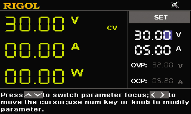 You can set thresholds for OVP and OCP values. If overvoltage or overcurrent occurs, the power supply shuts down the output automatically, and then a prompt message is displayed. |