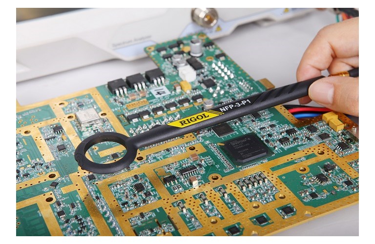 The NFP-3 is used with RIGOL DSA series spectrum analyzer for the EMI tests of electronic products. It can be used to test the magnetic field strength and magnetic field coupling channels on the surface of the electronic components as well as the magnetic field environment near the electronic module so as to quickly locate the interference source. NFP-3 includes four models (NFP-3-P1, NFP-3-P2, NFP-3-P3 and NFP-3-P4).