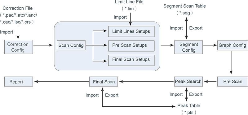 To quickly perform the EMI test with the software, we recommend you to follow the measurement procedures as shown in the figure below.