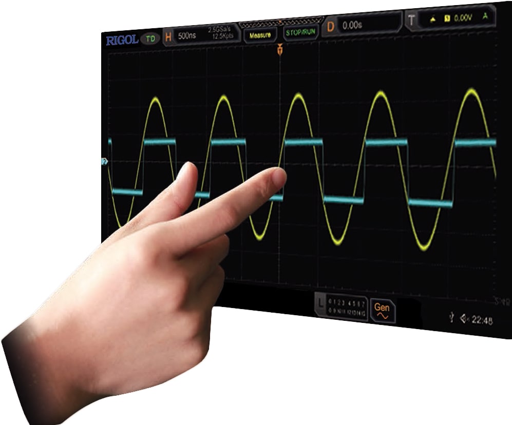 The MSO5000-E contains a 9 inch capacitive multi touch screen with gesture support. Various multi touch gestures are supported, including Tap, Drag, and Pinch and Stretch, making measurement actions smoother and easier to operate. In addition, the MSO5000-E has also kept traditional knob and key operation on the front panel.