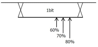 5. Sample Point Position - The sample point is the point within the bit’s time.The oscilloscope samples the bit level at this point. “Sample Point” is expressed by the percentage of “the time from the start of bit to the sample bit time” in “bit’s time”. Press Sample Point and use to adjust this parameter with a step of 1% and the range is from 5% to 95%.