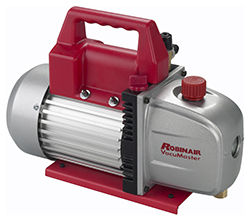 Robinair VacuMaster vacuum pumps features a two stage design, cleaning the system more thoroughly with a second vacuum, and leading to a deeper ultimate vacuum level. Designed for quick oil changes, the oil fill port and drain plug are easily accessible for fast and complete oil changes, and the easy view sight glass enables users to quickly see both oil color and level. VacuMaster pumps feature heavy duty motors, with a high torque design for easy start up and efficient operation. Available in a variety of sizes, Robinair offers a vacuum pumps for any application. Please see the chart below for more information.