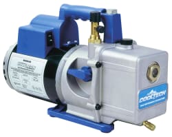 A vacuum pump that's fast and thorough saves you not only time, but also the expense of callbacks and dissatisfied customers. Robinair pumps perform better than other pumps in the industry, ensuring you complete dehydration before recharging. Robinair pumps are engineered specifically to meet the needs of the kind of A/C work you're doing today, and to give you trouble-free operation. We've put our years of experience and know-how into developing pumps that help you do the job faster and better. All Robinair pumps are backed by our exclusive "No Hassle" over-the-counter replacement warranty. You can return a pump to your Robinair distributor for an immediate exchange - with no hassle! (In U.S. and Canada only; in other locations, see your Robinair distributor.) Robinair CoolTech vacuum pumps are designed for use on A/C-R systems using CFCs, HCFCs, and HFCs in conjunction with mineral oil, ester oil, alkylbenzene oil, and PAG oil as lubricants. Do not use them with ammonia or lithium bromide systems; not for use with flammable refrigerants.