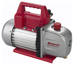 Robinair VacuMaster vacuum pumps features a two stage design, cleaning the system more thoroughly with a second vacuum, and leading to a deeper ultimate vacuum level. Designed for quick oil changes, the oil fill port and drain plug are easily accessible for fast and complete oil changes, and the easy view sight glass enables users to quickly see both oil color and level. This product can be use for automotive systems or HVAC, compatible with R134A. VacuMaster pumps feature heavy duty motors, with a high torque design for easy start up and efficient operation. Available in a variety of sizes, Robinair offers a vacuum pumps for any application. Please see the chart below for more information.