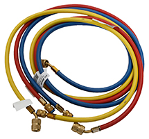 The Robinair 1/4" standard hoses with Quick Seal fittings 500 psi working pressure; 2500 psi burst pressure. Robinair premium refrigerant charging hoses are built for long life and dependability. A strong, six-sided crimp provides a reliable connection between the hose and barb, even at maximum pressure. The coupler nuts are deeply knurled for quick finger-tightening.