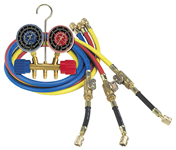 Our popular Side Wheel Manifold is durable and easy to use. Forged brass for long life; durable handwheels, color-coded Lexan. Gauge combinations that measure up to three different refrigerants with one manifold. Works with all refrigerants
