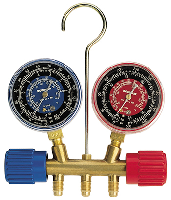 Our popular Side Wheel Manifold is durable and easy to use. Forged brass for long life; durable handwheels, color-coded Lexan. Gauge combinations that measure up to three different refrigerants with one manifold. Works with all refrigerants