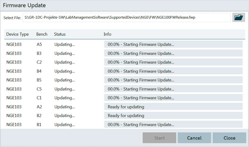 The ability to configure several instruments at the same time is crucial to generating identical training conditions for student groups. In addition, updating multiple instruments simultaneously saves time and boosts efficiency to keep the lab environment up to date. The file transfer function makes it possible to store, download and delete files from the instruments.