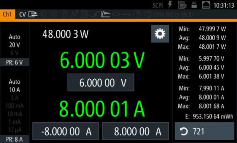 10 µF to 50 µF (mode low): < 30 µs (meas.)