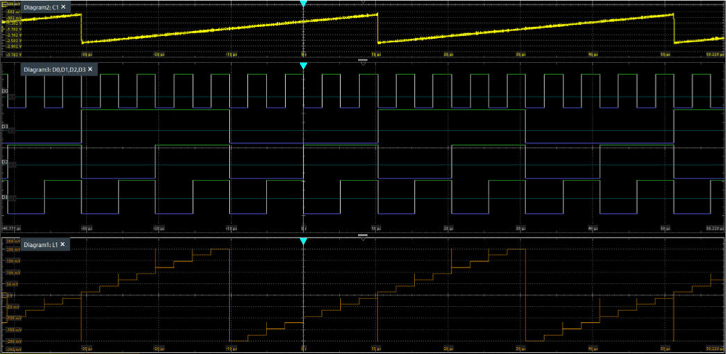 independent of the oscilloscope acquisition, the state (stays low, stays high or toggles) of the channels from D0 to D15 is displayed in the signal icon |