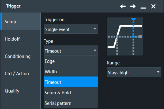 triggers when the source signal stays high, low or unchanged for a specified period of time |