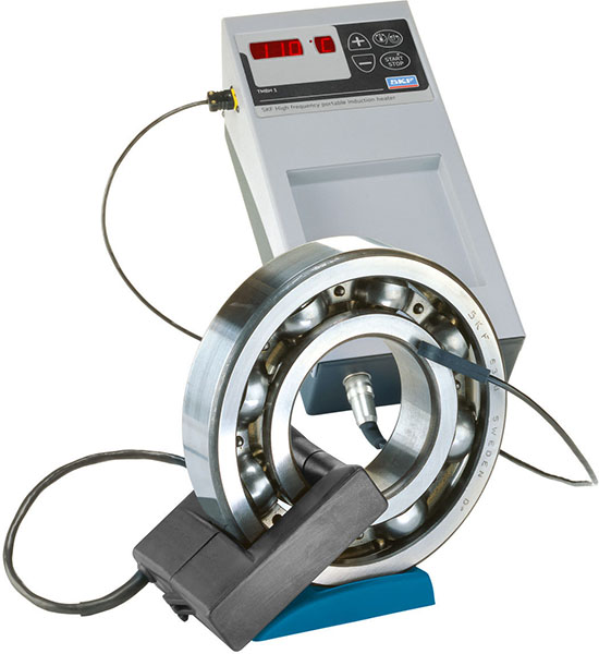 High frequency portable induction heater TMBH 1 The SKF bearing heater TMBH 1 is a portable lightweight heater for heating bearings with an inner diameter ranging from 20 to 100 mm (0.8 to 4 in) and a maximum corresponding weight of 4,5 kg (10 lb). The heater uses a patented method of heating based on high frequency induction, which provides optimized efficiency. This method is very quiet and creates no magnetization at all. In addition to bearings, the heater can also be used for heating ferrous components such as gears, pulleys, bushings and shrink rings.