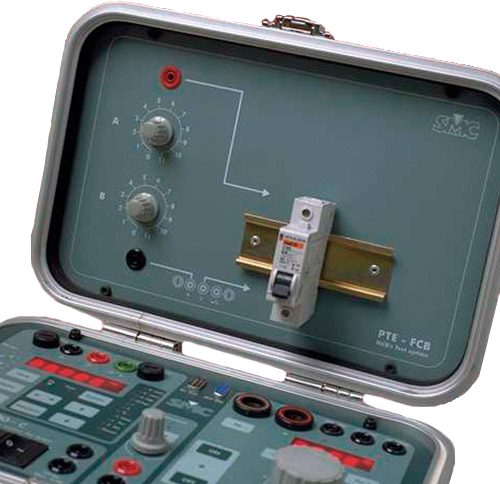 The PTE-FCB / PTE-FCD can be used to effectively reduce the sensitivity of the monitor input. The monitor input detects the relay's operation and stops (or starts) the chronometer when testing with the PTE-100-C, PTE-50-CE, PTE-50-CET, and all LETs excluding the LET-400 (which lacks a chronometer). Our timer can be programmed to stop when a significant amount of voltage appears across the MONITOR section. This is the preferred method to measure trip time in a single-pole MCB (miniature circuit breaker), because, being single-pole, there is no associated 'dry' contact that can be used to detect the trip operation. You inject the trip current across the MCB and, when it trips, the applied voltage appears across its poles. The PTE-FCD is required because there is also a voltage drop across the closed MCB, and it may be so significant as to activate the monitor, which intempestively stops the chronometer before the MCB has tripped, thus rendering the test impossible. With the PTE-FCD, you can attenuate this 'non-trip' voltage until it is no longer detected by the monitor, without affecting the detection of the 'trip voltage'. Once you have adjusted it for the particular MCB, you can proceed with the testing. The PTE-FCD is actually an integral part of the PTE-FCB optional accessory that installs inside the PTE-100-C's cover. However its functionality is useful also for other customers who need to test single-pole MCBs or similar tripping devices with test equipment other than the PTE-100-C (e.g. the LETs). SMC PTE-FCD In-field MCB Testing Provides a convenient DIN bracket and adjustments for the testing of low voltage thermo-magnetic MCB protections with one or more poles up to 250AAC. To test MCB'S up to 250A on site.