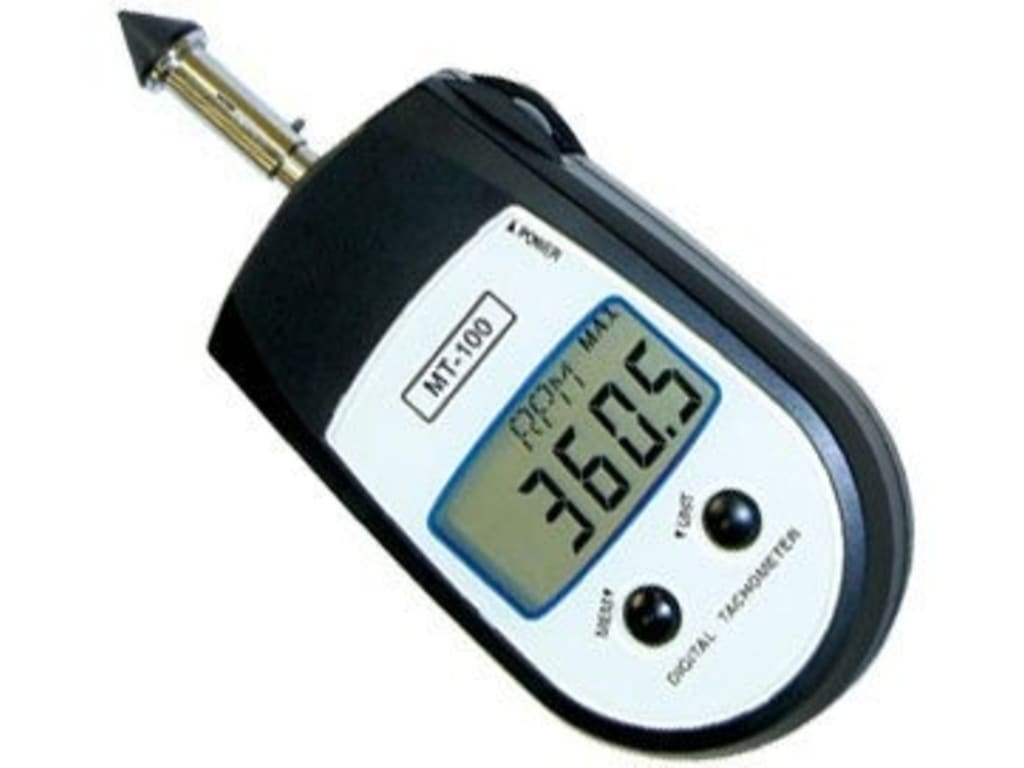 The MT-100 Contact Pocket Tachometer with microprocessor technology possesses the precision of the standard SHIMPO Tachometer line, yet within a compact, pocket-style enclosure. The MT-100 provides users with the capabilities of measuring and recording speeds of rotational, linear, and surface plus total length. These battery-operated tachometers feature the same rugged, high-quality components that have made SHIMPO tachometers the benchmark in the industry. The user-friendly, value-packed units feature memory storage; a quick selection unit button; length functions; retrieval of last, maximum, and minimum values; plus each unit comes standard with a free N.I.S.T. calibration certificate. Each unit ships in a protective carrying case which includes a cone adapter, funnel adapter, and 6” circumference wheel.