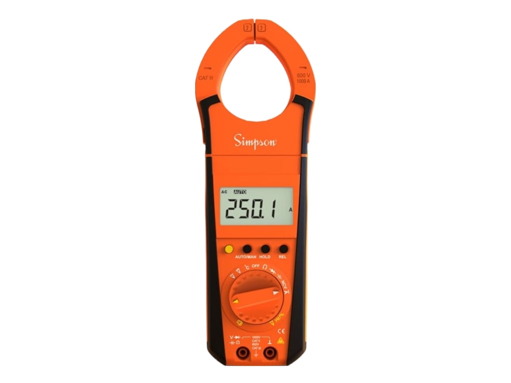 Simpson’s ES400A clamp meter measures important electrical parameters like AC Current, AC Voltage, and DC Voltage. It also features Capacitance, Ohm & Continuity, frequency, Duty cycle, and temperature measurement.