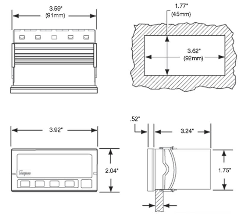 The Simpson Electric Hawk 3 Advanced Digital Panel Meter/Controller has both 3-1/2 and4-1/2 digit displays. All LEDs are 7 segment and offer 5 brightness levels.This high quality instrument has user-programmable parameters, all set from the front panel ineasy to understand terminology. The display shows activated set point indicators (up to four).The keypad buttons have both audible and tactile feedback to prevent keystroke errors. The Hawk 3 Series is very diverse offering multiple panel meters that include, DC Voltmeters, DC Ammeters, AC Voltmeters, AC Ammeters, and Ohmmeters. With the Hawk 3 Series all parameters set from easy to understand front panel access. There is an option of having one, two or four 5 amp relays. The Hawk 3 Series features five user selectable brightness levels, peak/valley and password lockout. Mounting Requirements