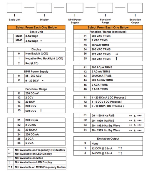 • 3-1/2 Digit Non Backlit (LCD) 20 DCV 24 DCV @ 25mA † †