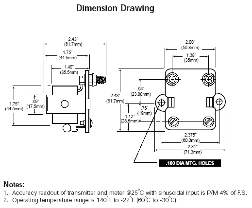 The model 186 current transformer converts a current signal to a 0-10 AC Volt signal. This signal can be easily transmitted to a remote location with little Voltage drop. The VA rating of a typical Donut Current Transformer allows only about 15 feet of wire between Donut and display unit. By converting the current signal to a voltage signal, the line loss to the display unit becomes a negligible factor over a greater distance. These units are also about a third of the price compared to transmitters that amplify and isolate a current signal. Analog rectifier type meters can have custom dials installed to display the current value of the transformer. A digital display meter can be scaled to the current value easily, but a 20,000 ohm 1/2 watt shunt is required across the secondary of the current transformer for accuracy to be maintained.