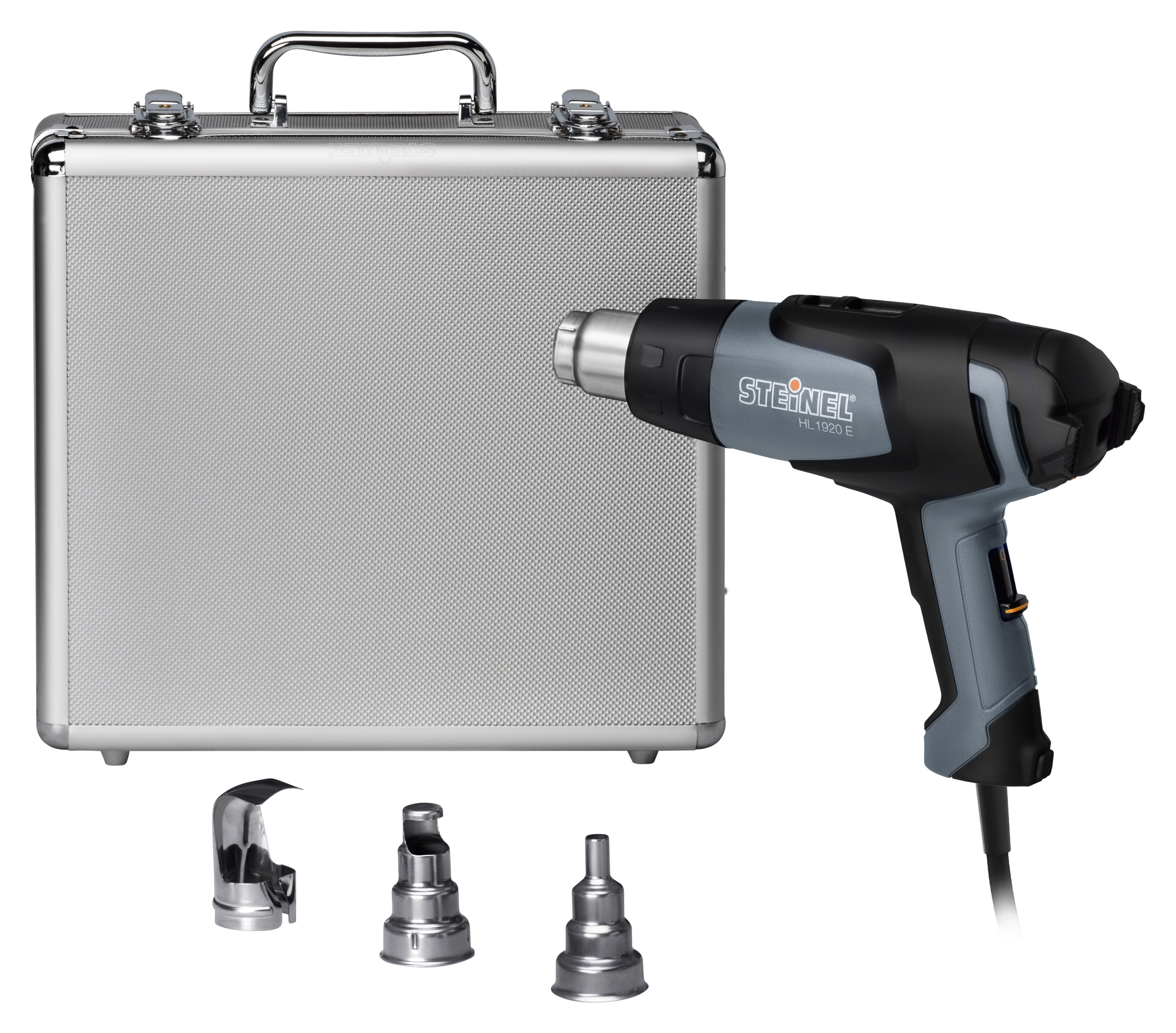 These all contain the Steinel HL1920E heat tool, but are available in packages made for specific applications. The list below provides an overview of each. • HL1920E - Heat Tool, Catalog # 110025596 • HL 1920 E Heat Tool • HL1920E - Heat Tool with Case, Catalog # 110052756 • HL 1920 E Heat Tool • Heavy duty case • HL1920E INDUSTRIAL - Industrial Kit, Catalog # 110051543 • HL 1920 E Heat Tool • Reflector Nozzle 14mm • Reflector Nozzle 39mm • Reduction Nozzle 9mm • Reduction Nozzle 20mm • Window Nozzle 75mm • Catalog • Heavy Duty Carrying Case • HL1920E MULTI - Multi Purpose Kit, Catalog # 110051544 • HL 1920 E Heat Tool • Reflector Nozzle 9mm • Reflector Nozzle 14mm • Reflector Nozzle 39mm • Reduction Nozzle 9mm • Welding Nozzle • Plastic Welding Rod Assortment • Plastic Welding Booklet • Catalog • Heavy Duty Case • HL1920E PLATINUM - Platinum Kit, Catalog # 110051545 • HL 1920 E Heat Tool • Spreader Nozzle 75mm • Reflector Nozzle 14mm • Reflector Nozzle 39mm • Reduction Nozzle 9mm • Shrink Tubes • Catalog • Silver Case • HL1920E CLASSIC - Classic Kit, Catalog # 110051546 • HL 1920 E Heat Tool • Reflector Nozzle 14mm • Reflector Nozzle 39mm • Reduction Nozzle 9mm • Catalog • Silver Case