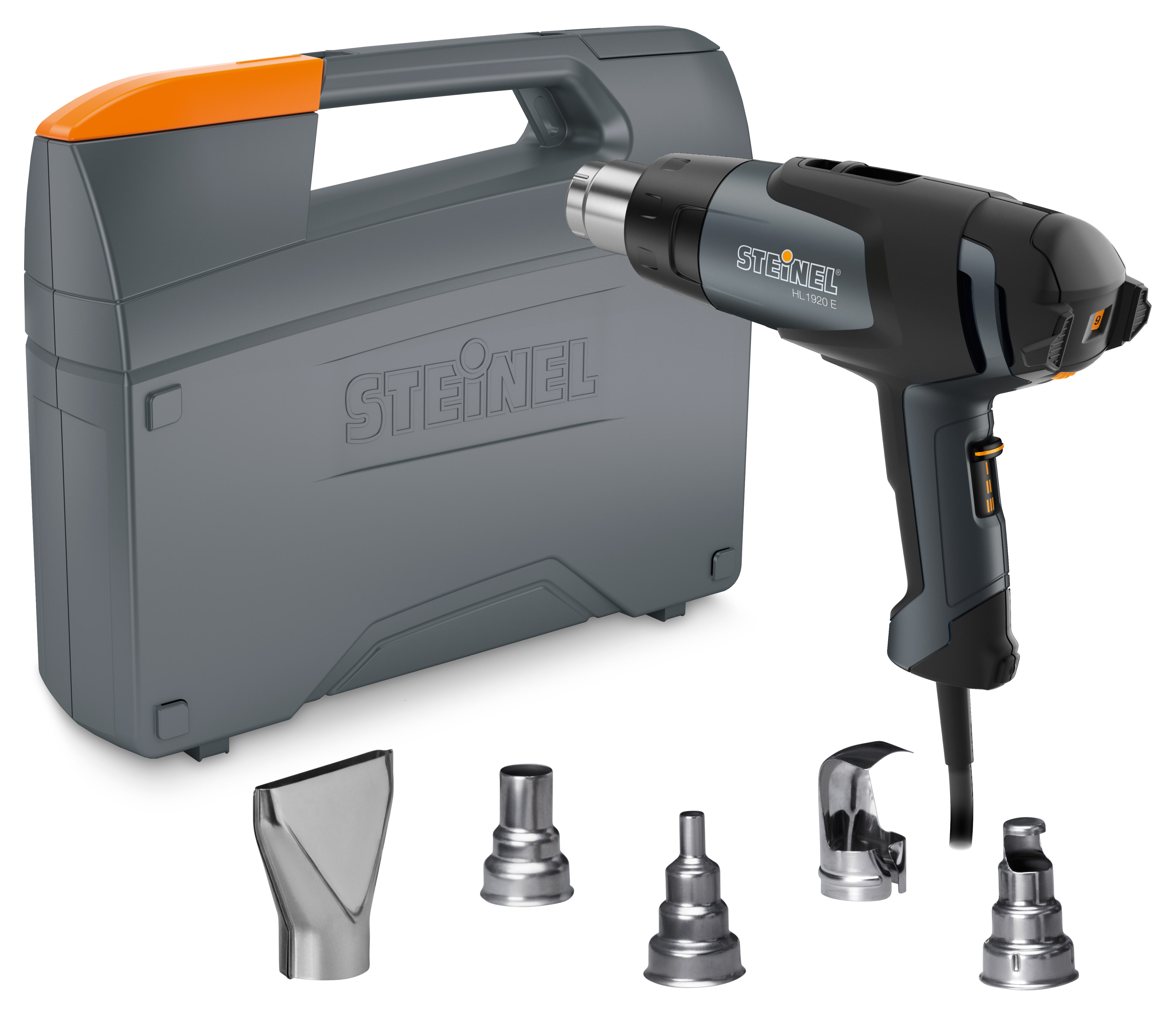 These all contain the Steinel HL1920E heat tool, but are available in packages made for specific applications. The list below provides an overview of each. • HL1920E - Heat Tool, Catalog # 110025596 • HL 1920 E Heat Tool • HL1920E - Heat Tool with Case, Catalog # 110052756 • HL 1920 E Heat Tool • Heavy duty case • HL1920E INDUSTRIAL - Industrial Kit, Catalog # 110051543 • HL 1920 E Heat Tool • Reflector Nozzle 14mm • Reflector Nozzle 39mm • Reduction Nozzle 9mm • Reduction Nozzle 20mm • Window Nozzle 75mm • Catalog • Heavy Duty Carrying Case • HL1920E MULTI - Multi Purpose Kit, Catalog # 110051544 • HL 1920 E Heat Tool • Reflector Nozzle 9mm • Reflector Nozzle 14mm • Reflector Nozzle 39mm • Reduction Nozzle 9mm • Welding Nozzle • Plastic Welding Rod Assortment • Plastic Welding Booklet • Catalog • Heavy Duty Case • HL1920E PLATINUM - Platinum Kit, Catalog # 110051545 • HL 1920 E Heat Tool • Spreader Nozzle 75mm • Reflector Nozzle 14mm • Reflector Nozzle 39mm • Reduction Nozzle 9mm • Shrink Tubes • Catalog • Silver Case • HL1920E CLASSIC - Classic Kit, Catalog # 110051546 • HL 1920 E Heat Tool • Reflector Nozzle 14mm • Reflector Nozzle 39mm • Reduction Nozzle 9mm • Catalog • Silver Case