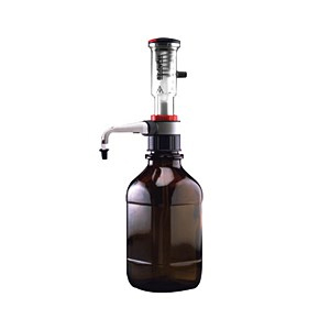 The bottle top dispenser provides a low cost option for liquid dispensing without compromising on accuracy or reliability. The Bibbypet's innovative design utilises materials suitable for routinely dispensing many common laboratory liquids; dilute acids, buffers, biological solutions, polar solvents, even strong alkaline solutions.